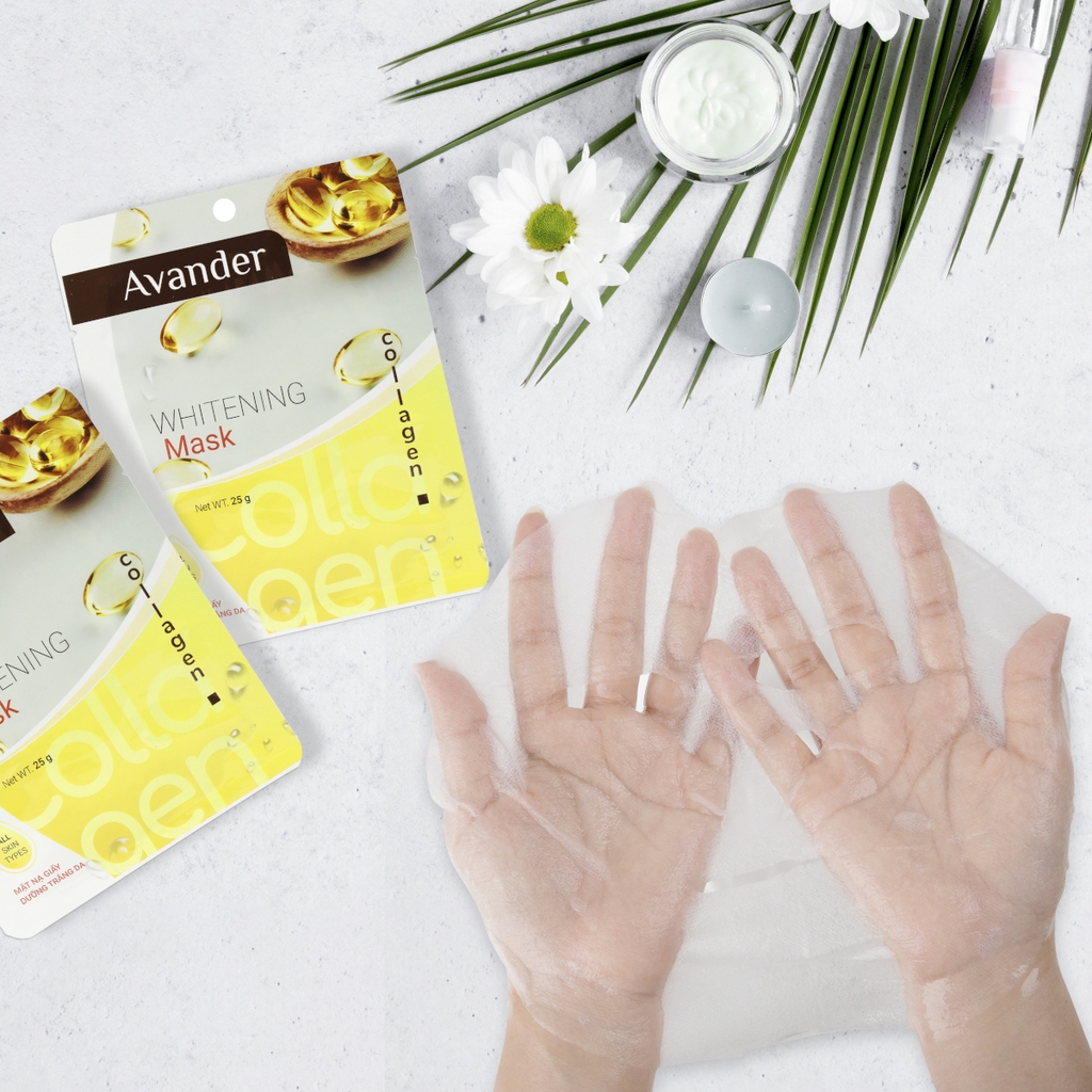 Mặt nạ giấy Collagen AVANDER giúp dưỡng trắng da, cấp ẩm và dưỡng ẩm da, dưỡng sáng da, giúp làm đều màu da, se khít lỗ chân lông, mềm mịn da, giúp làm mờ các dấu hiệu lão hóa da.