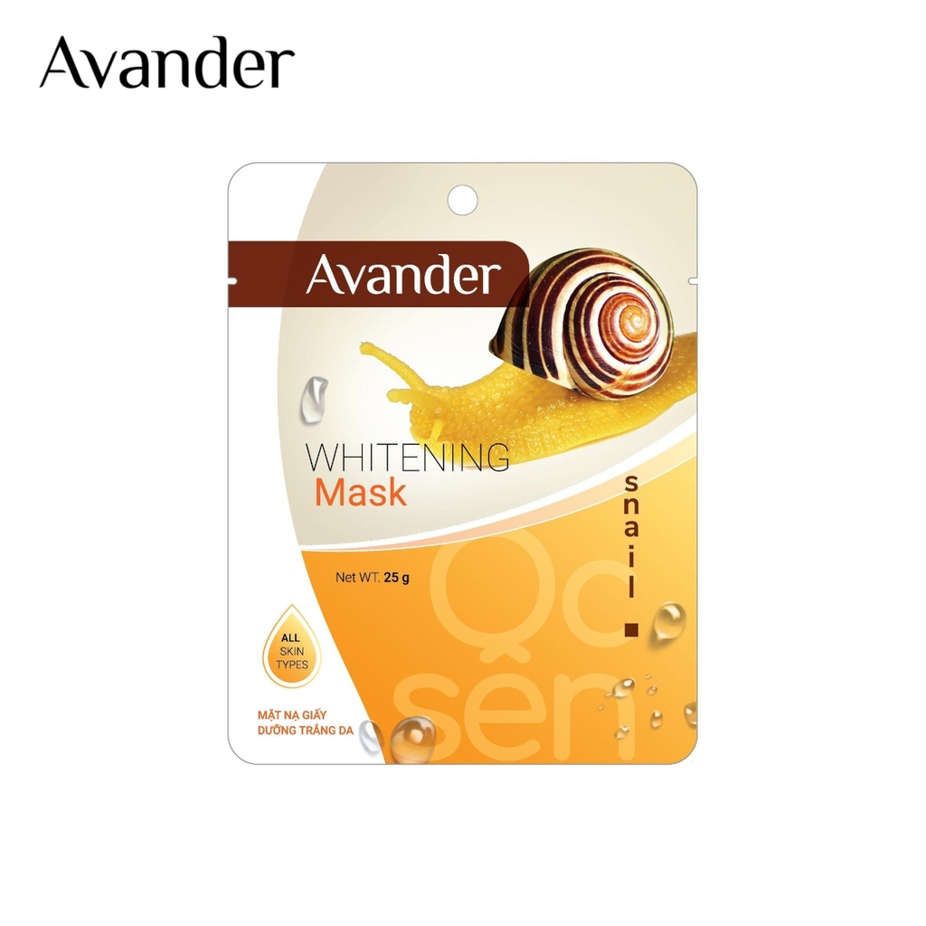 Mặt nạ giấy Ốc sên AVANDER giúp dưỡng trắng da, dưỡng ẩm da, giúp làm dịu da, dưỡng sáng da, giúp làm đều màu da, mềm mịn da, se khít lỗ chân lông, giúp làm mờ các nếp nhăn trên da, giúp làm mờ dấu hiệu lão hóa da.